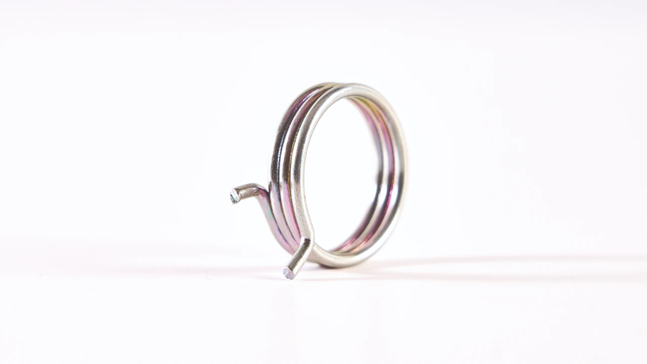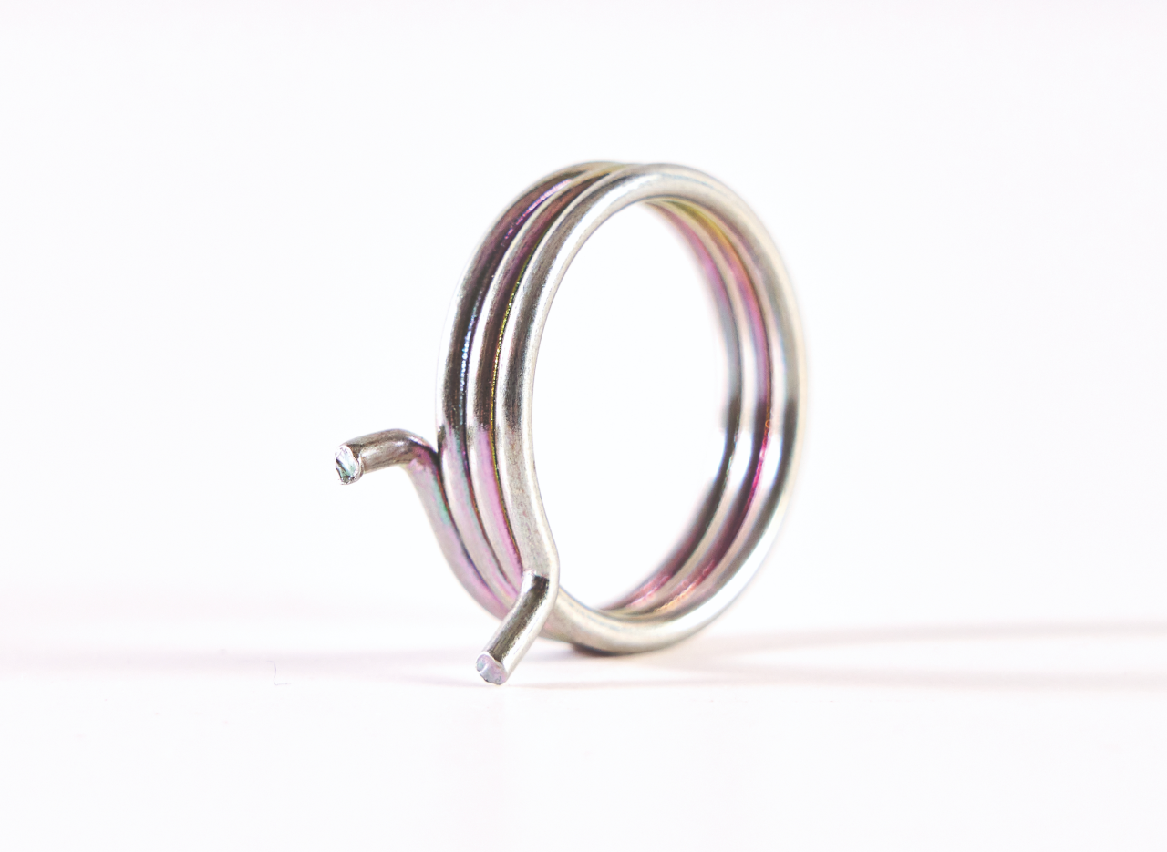 Al girar una de sus patas respecto a la otra, el muelle intenta volver a su posición angular inicial. Cuanto más lo giras, más fuerza ejerce.