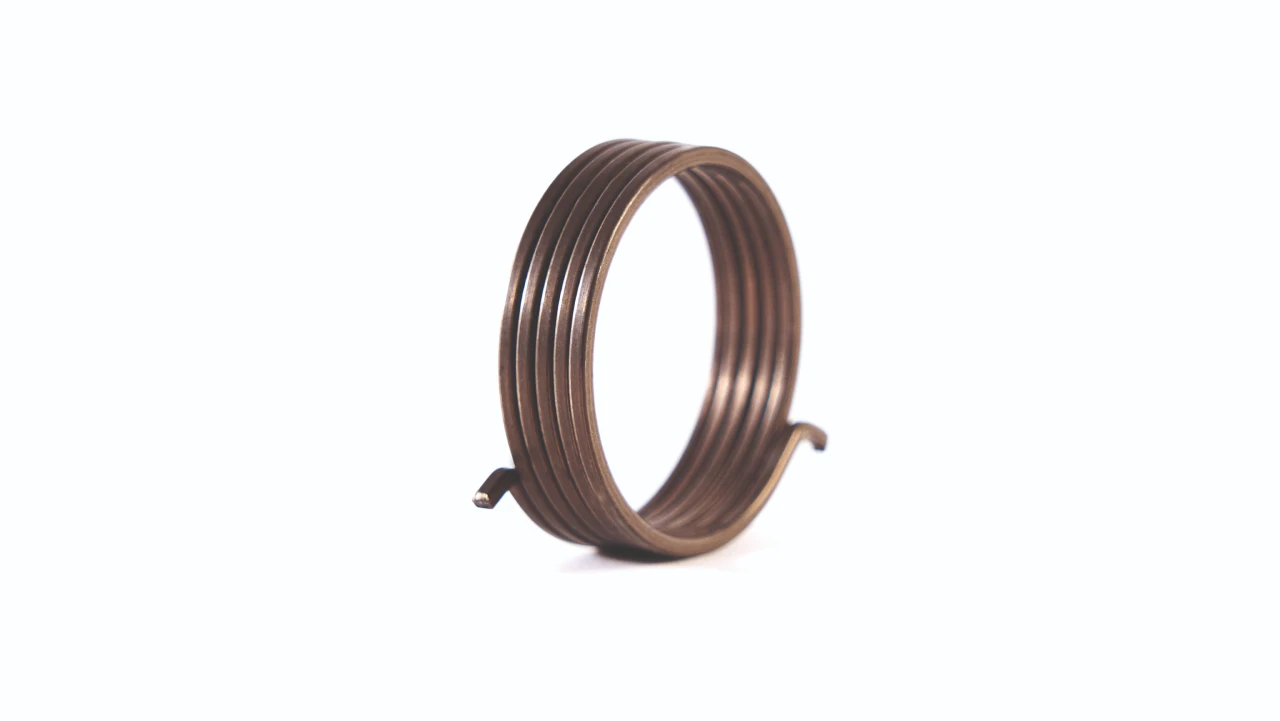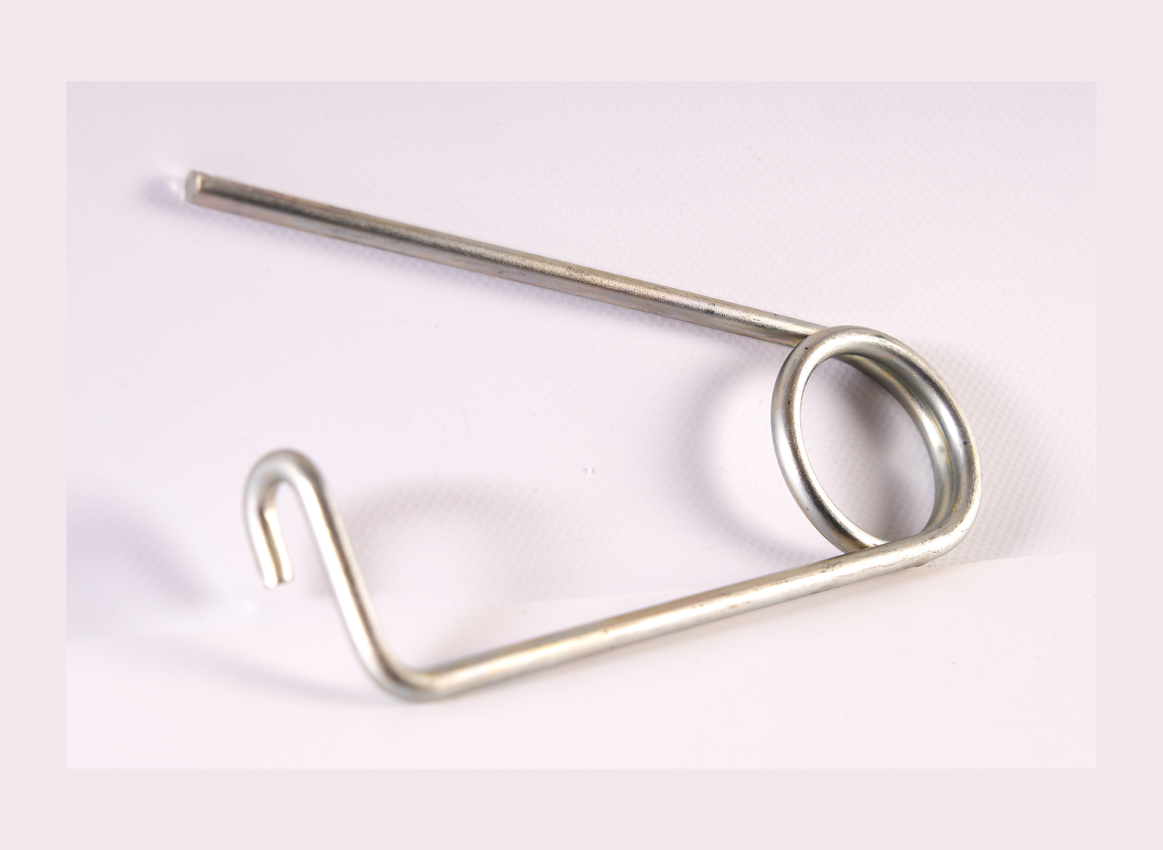 Es un resorte que trabaja mediante un par de fuerzas (rotación). Sus extremos (patas) giran alrededor del eje del muelle ejerciendo presión rotativa.